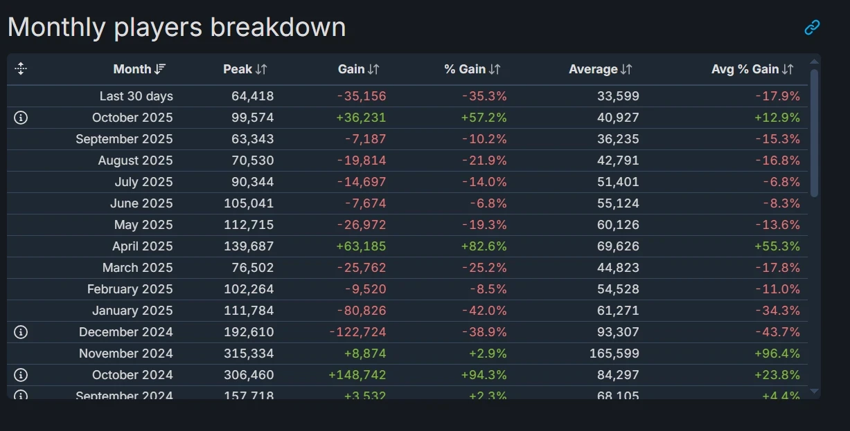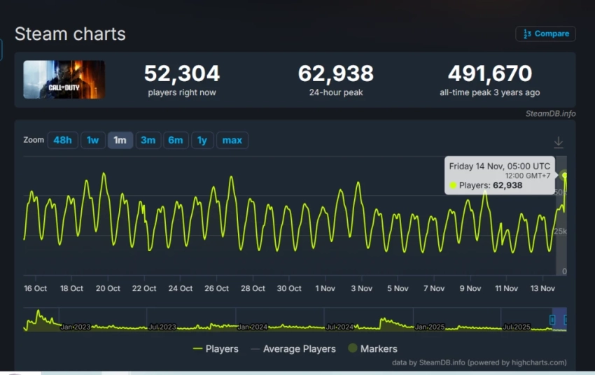 2 фотоДа и в целом у Call of Duty в Steam не особо всё хорошо с онлайном в последние месяцы. В октябре, напомним, проходили акции с бесплатной игрой в Black Ops 6.