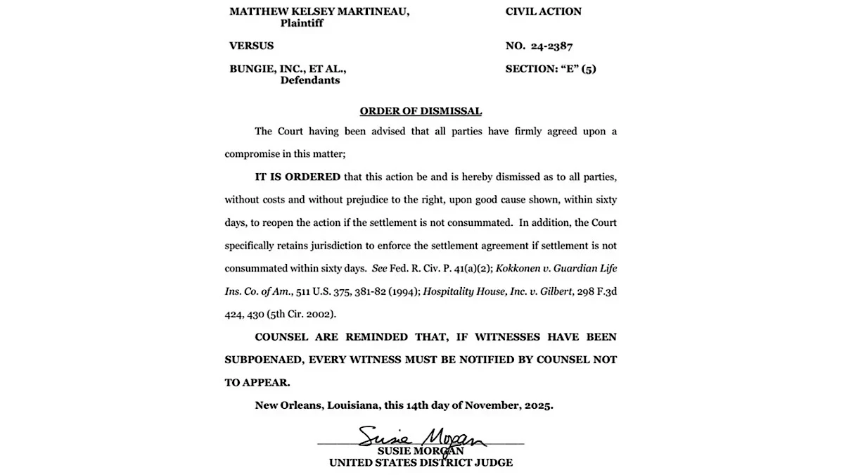 «Данное дело в отношении всех сторон прекращается без возмещения издержек и без ущерба для права, при наличии уважительной причины», — отмечено в документе.