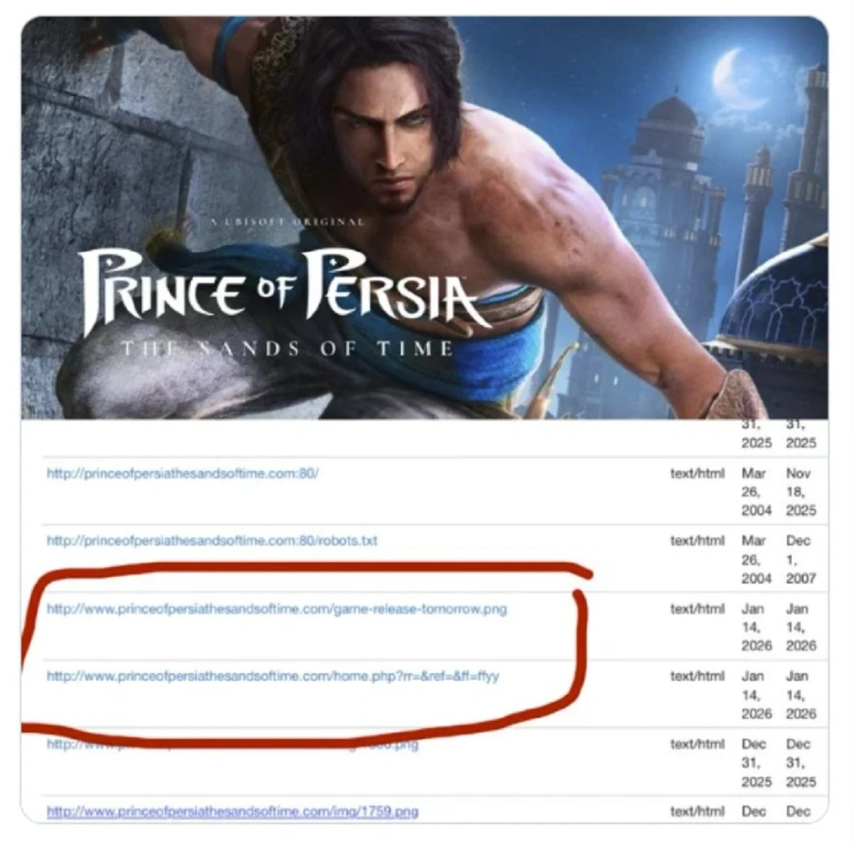 Изначально находкой в социальных сетях поделилось фанатское сообщество Prince of Persia, которое ныне заблокировано. Вероятно, в дело вмешалась Ubisoft и решила удалить утечки, дабы не портить игрокам грядущий сюрприз. Однако до официальных объявлений информацию стоит воспринимать со скепсисом.