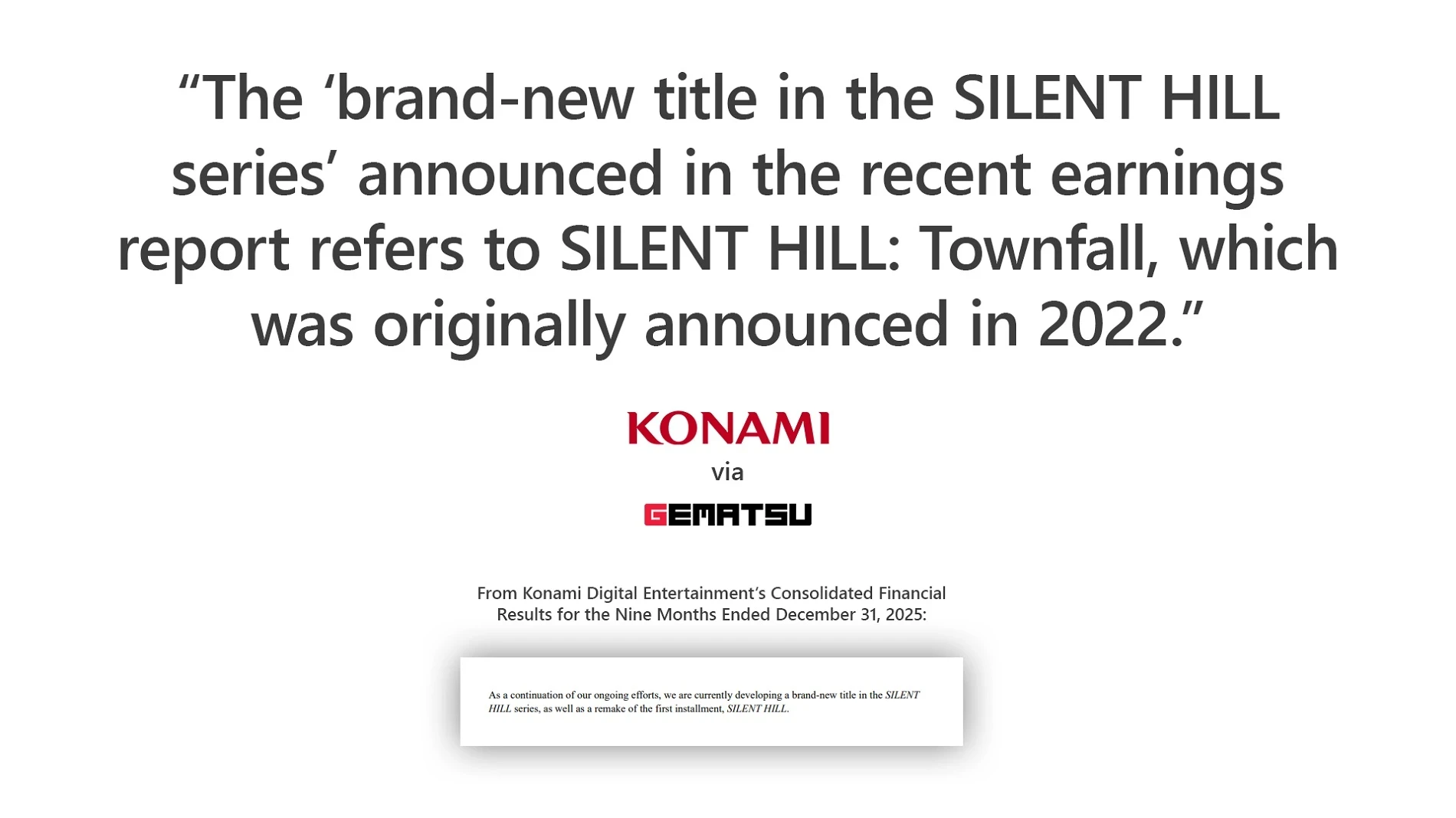 «Новая Silent Hill» из свежего отчёта Konami оказалась SH: Townfall авторов Stories Untold