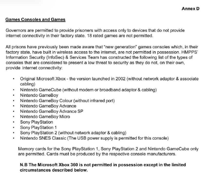 Да, в Великобритании заключённым разрешён данный вид досуга. Правда, только на старых консолях, например, на PS2.