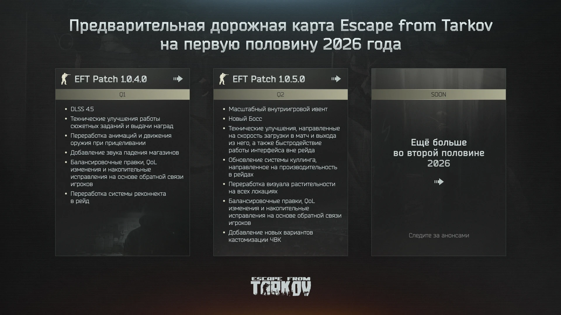 Главная » Статьи » Авторы Escape from Tarkov поделились планами на первую половину 2026 года