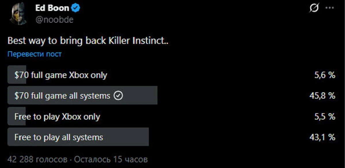 Опрос о потенциальном возрождении Killer Instinct. Источник: соцсети Эда Буна