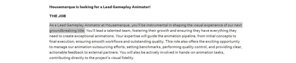 Housemarque известна по экшен-рогаликам Returnal и Saros — последний только готовится к релизу. О её следующей игре пока нет информации, но в описании вакансии ведущего геймплейного аниматора говорится о разработке чего-то «новаторского». У кандидата также должен быть опыт работы с AAA-татйлами.