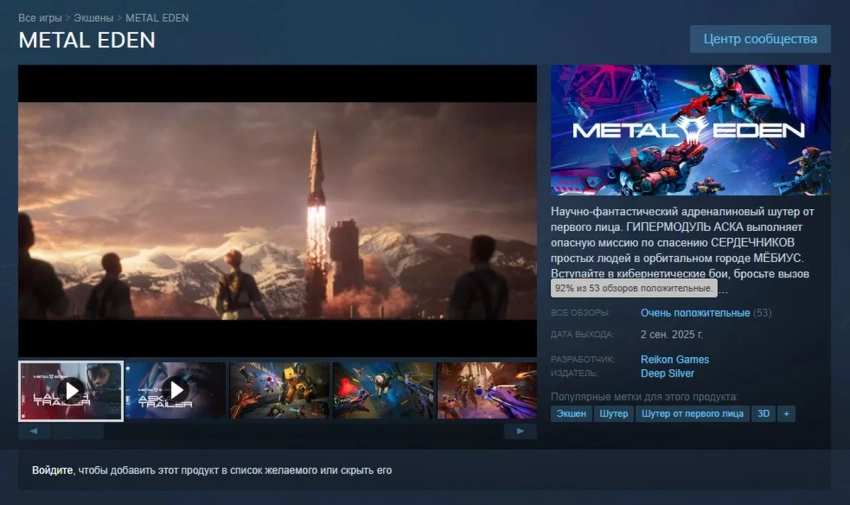Ещё больше интересных видео на YouTube канале Игромании!Обложка: скриншот Metal EdenУраганный шутер Metal Eden, выдержанный в футуристическом сеттинге, вышел на PC, PS5 и Xbox Series 2 сентября. Эмбарго на публикацию рецензий спало в тот же день, и большинству обозревателей новинка понравилась — у неё 76/100 баллов на OpenCritic и 77/100 на Metacritic.