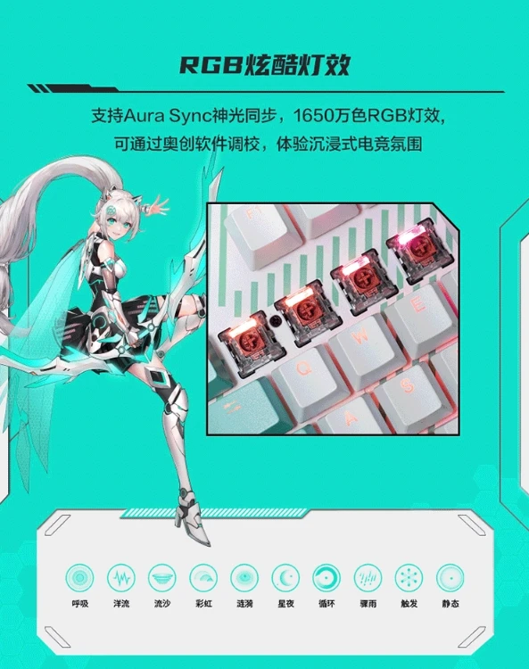 Чтобы клавиатура служила долго, в ней используются оптико-механические переключатели которые выдерживают до 100 миллионов нажатий. Это гарантирует надёжность устройства даже при интенсивном использовании. Кроме того, клавиатура поддерживает функцию полного переключения клавиш и защиту от ореолов, что позволяет точно регистрировать нажатия во время игровых сессий. Вы можете выбрать модель с красными переключателями для линейных нажатий или с синими — для тактильного набора текста и лёгкого щелчка. Модель TX98 обладает высокой степенью защиты от влаги и пыли, благодаря классу водонепроницаемости IP57. Это делает её надёжным выбором для использования в различных условиях. Для минимизации вибрации и шума в клавиатуре используется уплотнительная конструкция с звукопоглощающими накладками и дополнительными стойками.